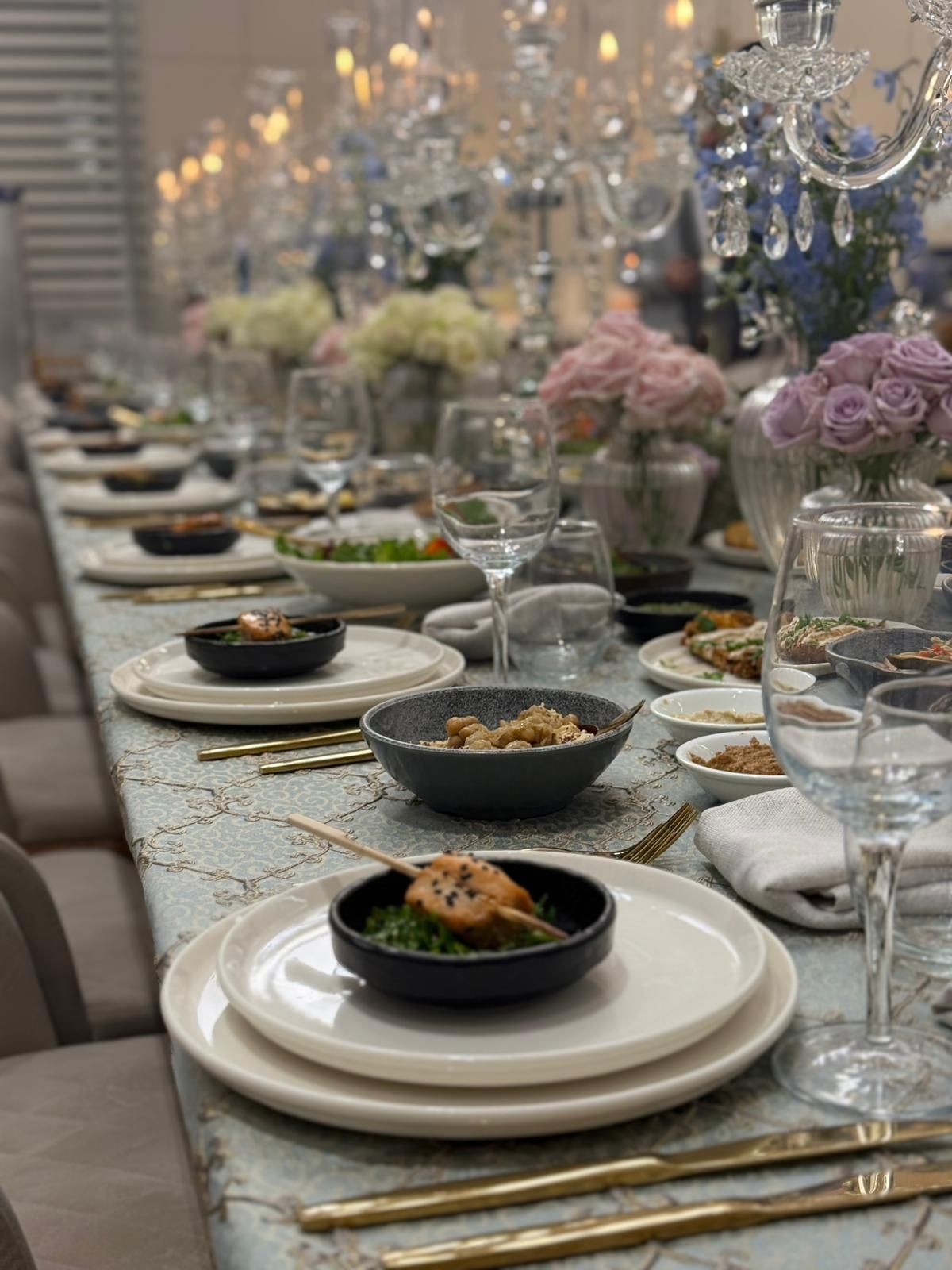האסתטיקה: הגשה על כלי פורצלן יוקרתיים ומפות פרימיום, המעניקים לשולחן מראה יוקרתי ומוקפד.